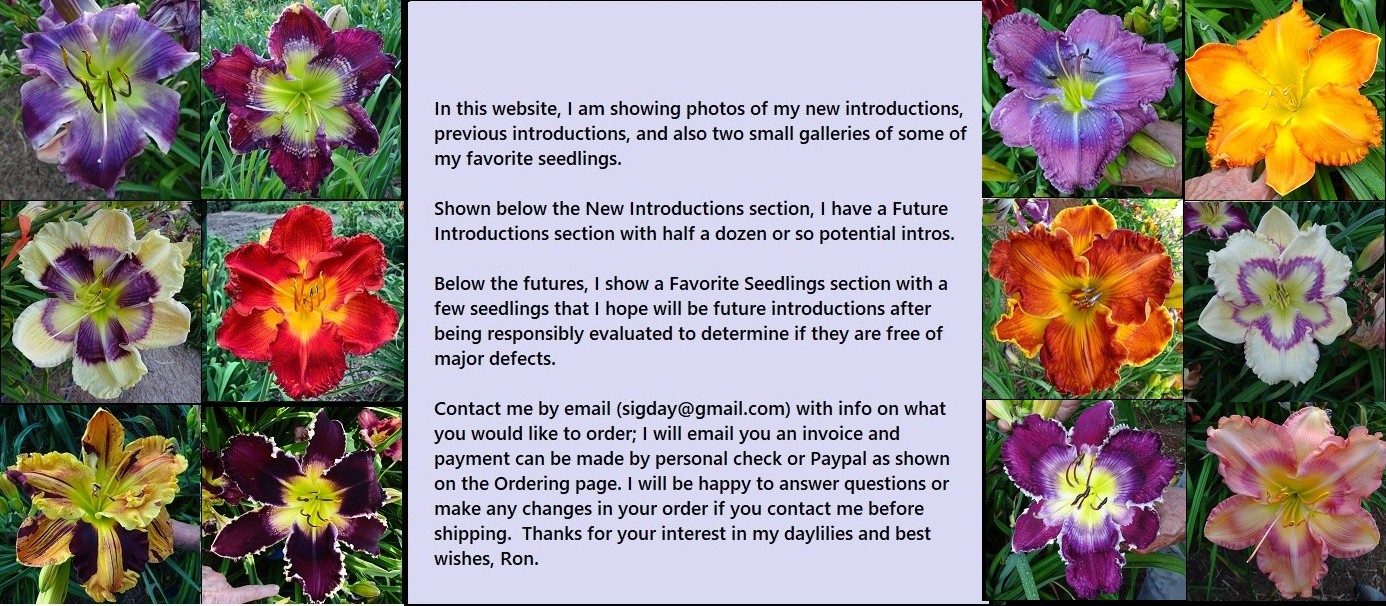 The faces of my flowers are similar to the photos of flowers shown by other hybridizers. Genes for eye patterns, bright colors, large flowers, etc., are widely distributed across the country. However, I have narrowed my line of selected seedlings to those which will perform well under adverse growing conditions, primarily rust infestation conditions and hot summer sun exposure. I have favored dormant foliage also because most dormant daylilies can perform better after our single digit winters. So, while these daylily introductions have not reached overall perfection, another hybridizer may benefit from adding some toughness to his/her best seedlings by crossing them with my best of a similar type. After all, tinkering with imperfect crosses to hit the jackpot seedling is what hybridizing is all about, in my opinion.